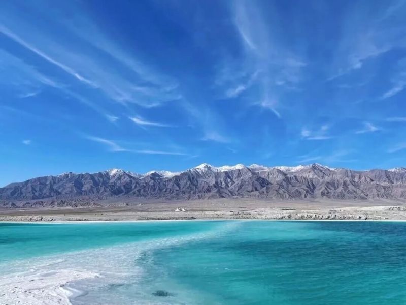 • 🌊 Hồ muối Chaka – được mệnh danh là “Tấm gương của bầu trời”, một trong những hồ muối đẹp và nổi tiếng nhất thế giới. Mặt hồ phẳng lặng, trong vắt như gương, phản chiếu bầu trời xanh và mây trắng, tạo nên khung cảnh siêu thực giữa cao nguyên Thanh Tạng.